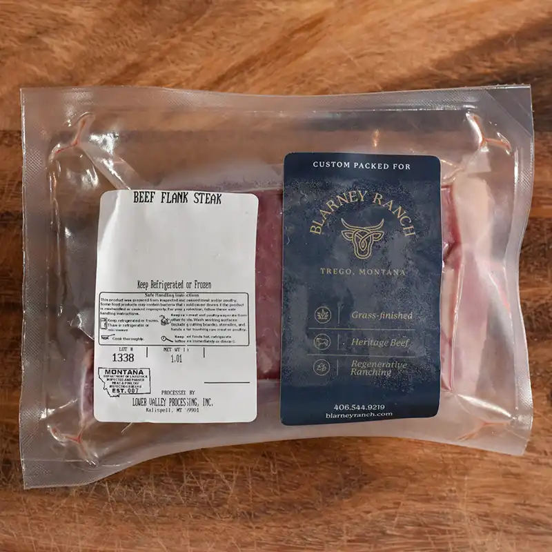Your Blarney Ranch flank steak will range from .8 – 1.5 pounds.